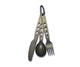 The three piece AlphaSet has punched-out hexagonal holes in the handles to reduce weight while serving as a multipurpose tightening tool. This tough, lightweight hard anodized aluminium cutlery set comes with a mini carabiner to keep the pieces together.
